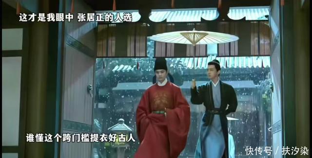 一身红色明制官袍,漫天的风雪和坚毅的脸庞,尤其是跨门槛提衣的动作,既没有娇弱的女气,又能有古人当年的神态。